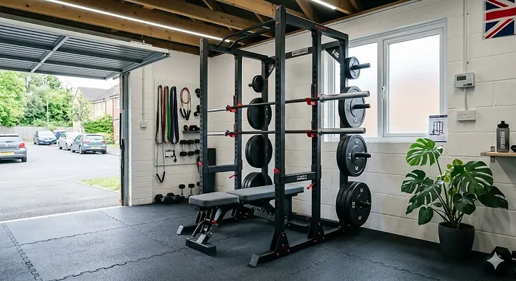 The rack lives permanently in your garage; fine. But where are you storing the 7ft Olympic barbell, 100-150 kg of plates, adjustable bench, and various accessories? British garages and spare rooms fill quickly once you account for actual training setup. Budget at least 2 x 1.5 metres of additional space beyond the rack footprint for equipment storage, or accept that your “home gym” becomes a permanent fixture that prevents parking your car in the garage (a common British home gym builder confession).